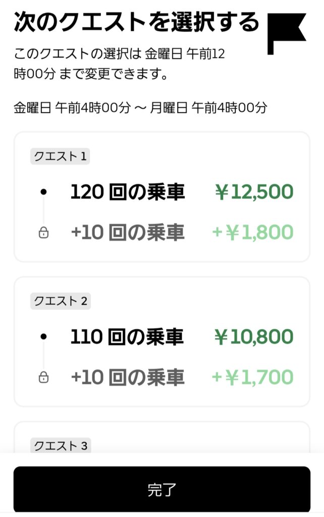 ウーバーイーツの最新クエストは『選択制クエスト』