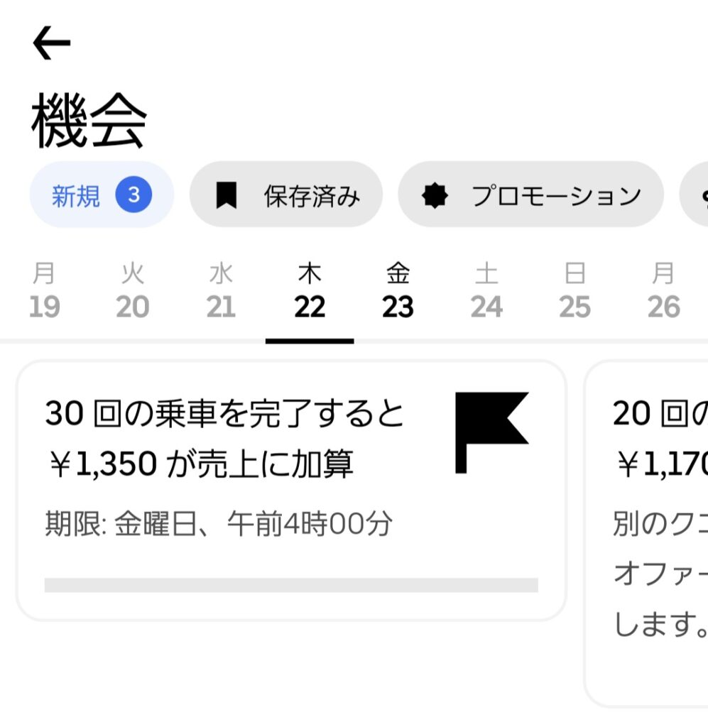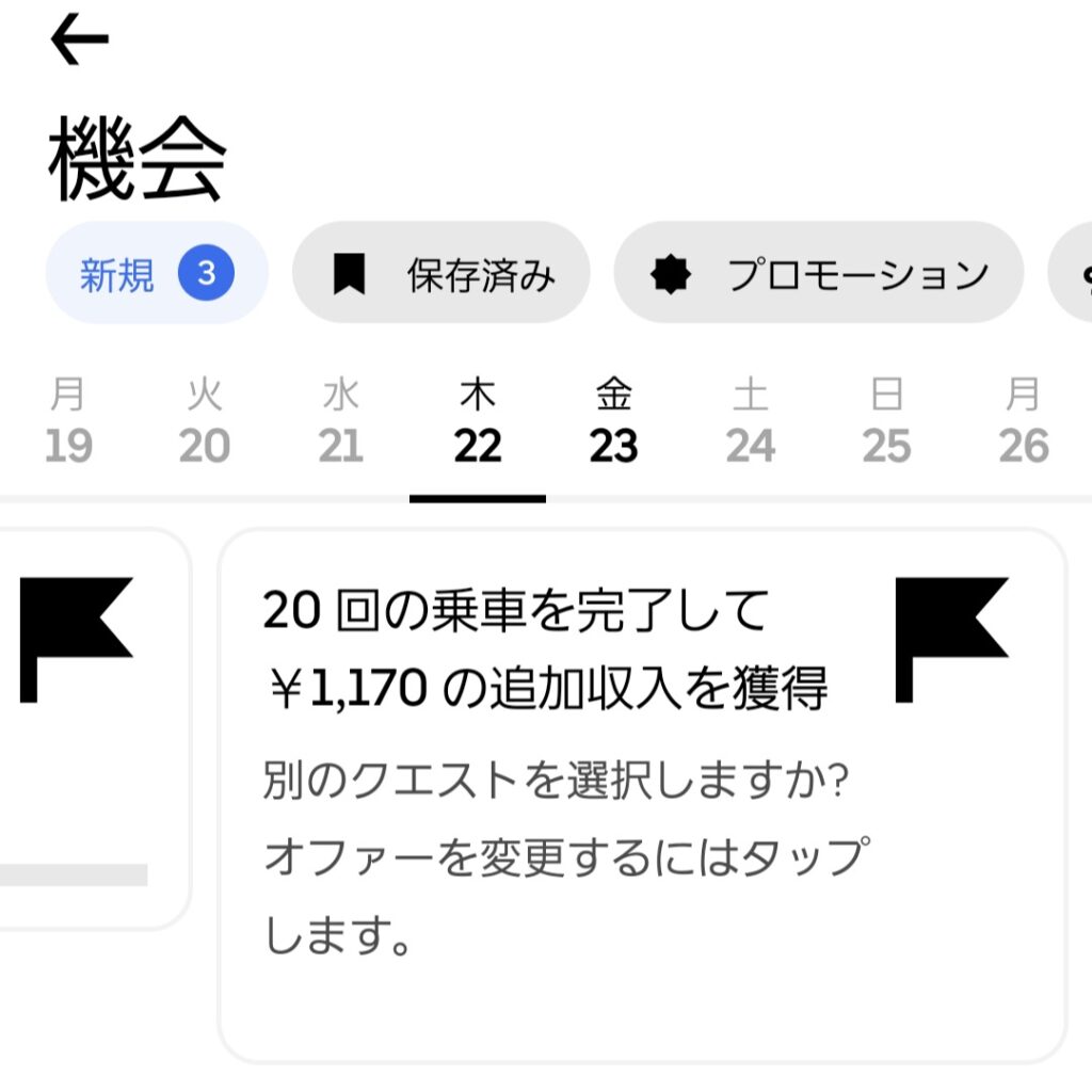 これは、全員に出るクエストではなく、無作為に一定数の限られた配達員にしか出ません。