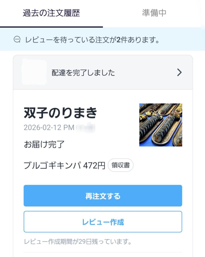 ウーバーイーツや出前館、セブンナウは頼むけど、ロケットナウは頼んだことがない。