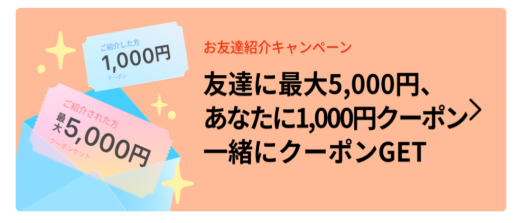 お友達紹介キャンペーンで1,000円クーポンを無限にもらい続けましょう。