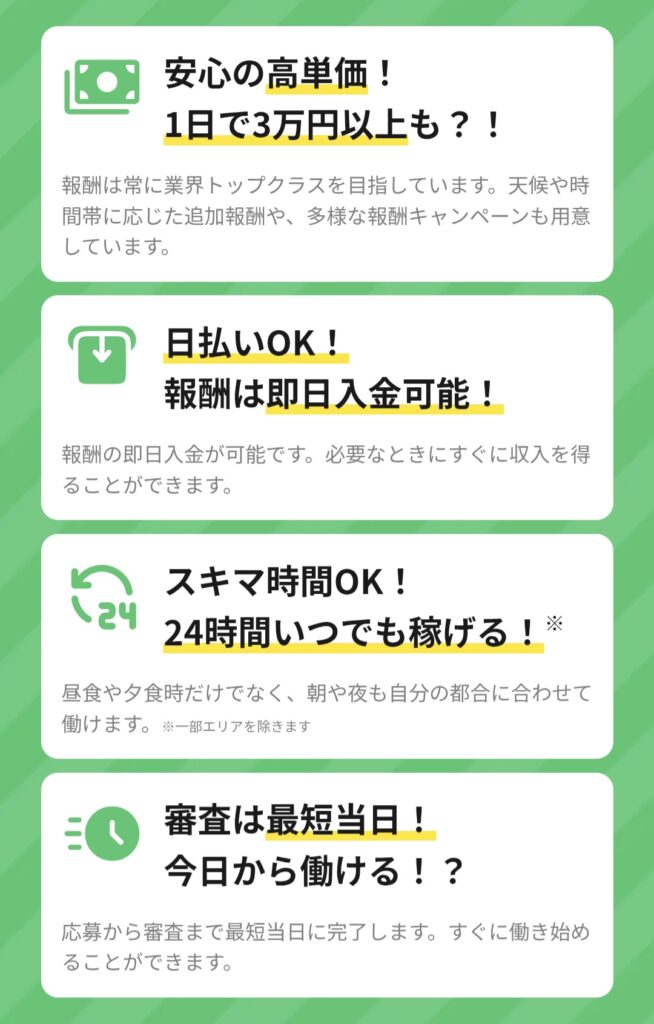 今回はmenuは、こうすると稼ぎやすいという内容は書きません。ただウーバーイーツの配達をしている人にとって、参考までに、上のような『大阪エリアについて』のmenuのだいたいのイメージをお伝えしました、フードデリバリーなので業務は『配達』です、同じです。なので躊躇せずに、まずはメールアドレスだけで応募しましょう!